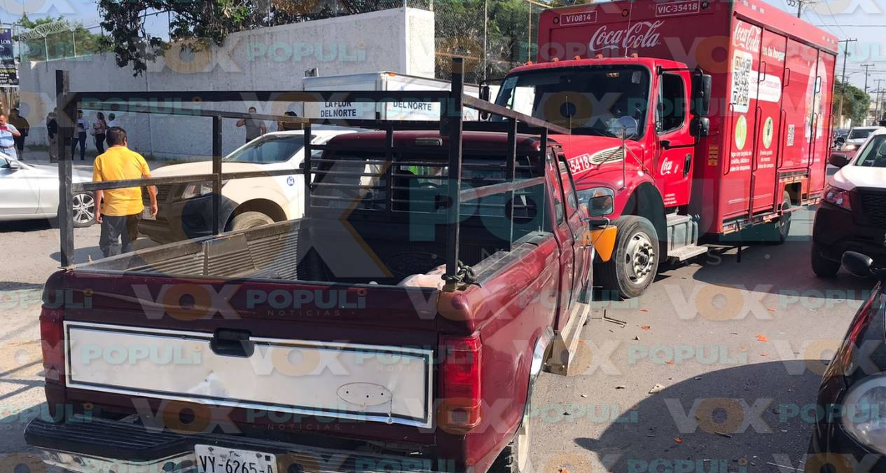La carambola en Ciudad Victoria inició cuando dos conductores aseguraron haber cruzado con luz verde en el semáforo. Un Mercedes Benz C200 de alta gama y una Ford Ranger estuvieron involucrados; el impacto terminó afectando a una Nissan NP 300 y un camión Freightliner de Coca-Cola.