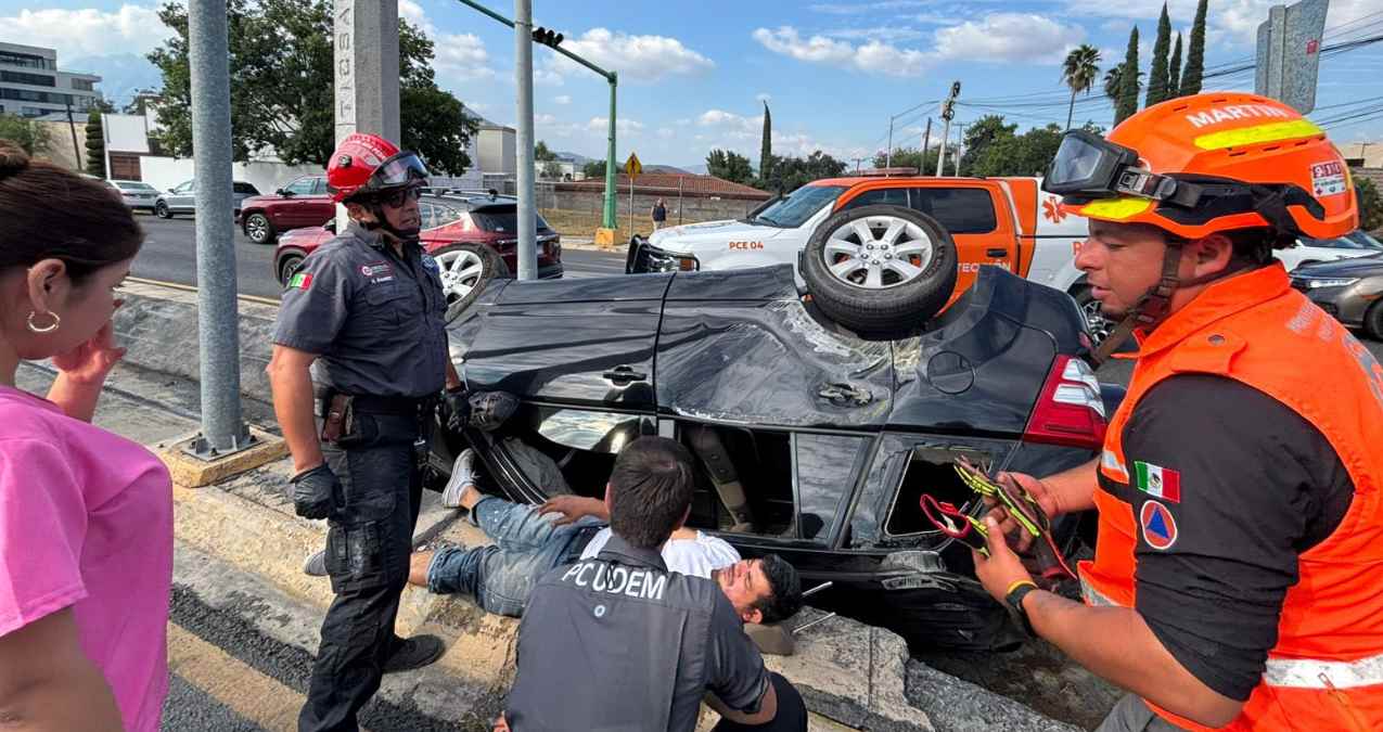 Conductor lesionado en San Pedro tras fuerte volcadura en avenida Alfonso Reyes