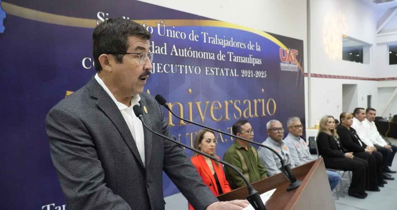 En su mensaje, destacó que, a más de cinco décadas, esta organización sindical ha sido parte esencial del crecimiento, la estabilidad y la fortaleza de la Universidad, subrayando que este encuentro no solo es una celebración, sino un reconocimiento al esfuerzo constante que hace posible que la UAT siga siendo un orgullo para todo el estado de Tamaulipas.