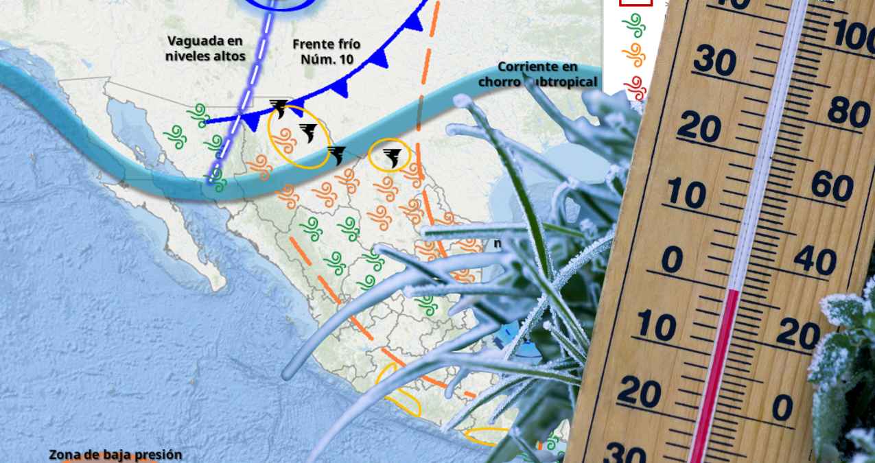 México: El frente frío número 10 recorrerá el norte del país y, junto con un canal de baja presión, una vaguada en altura y la corriente en chorro subtropical, provocará lluvias fuertes y vientos intensos en esa región. Se esperan rachas de 65 a 80 kilómetros por hora y la posible formación de torbellinos o tornados en zonas de Chihuahua y Coahuila.