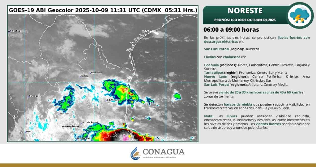 Fuertes lluvias y clima cálido en Tamaulipas afectarán municipios del sur