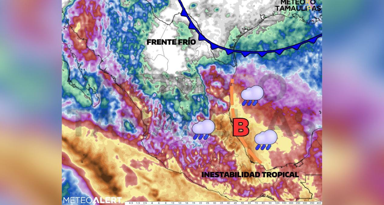 “El ingreso de humedad tropical desde el Golfo estará generando lluvias localmente fuertes a intensas, principalmente en la zona centro y sur de Tamaulipas. Se espera que los eventos más relevantes se presenten entre el miércoles y el viernes”.