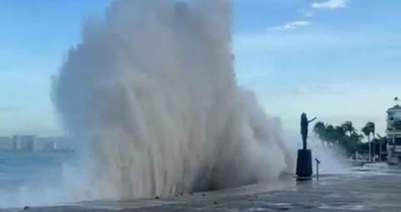 La Unidad Estatal de Protección Civil y Bomberos de Jalisco confirmó que el oleaje ha llegado incluso hasta el Bulevar Francisco Medina Ascencio.
