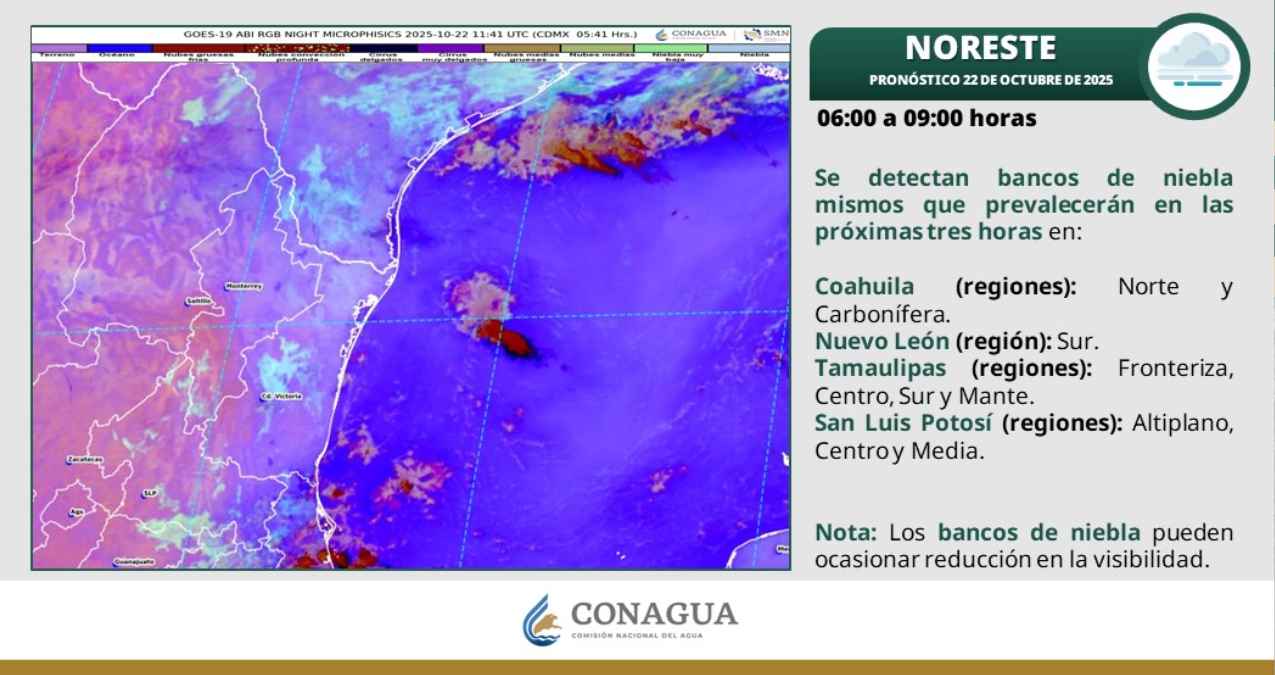 También se prevé viento con velocidades de entre 10 y 25 km/h y rachas de hasta 50 km/h en estados del norte y centro del país como Chihuahua, Durango, Zacatecas, San Luis Potosí, Aguascalientes, Coahuila, Nuevo León, Tamaulipas, Jalisco y Guanajuato, además de las costas de Campeche, Yucatán y Quintana Roo.