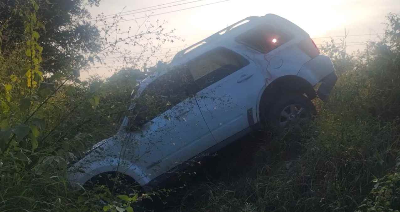 Durante un recorrido de vigilancia, los elementos detectaron una camioneta Mazda Tribute que había salido del camino, con tres personas a bordo, una de ellas menor de edad.