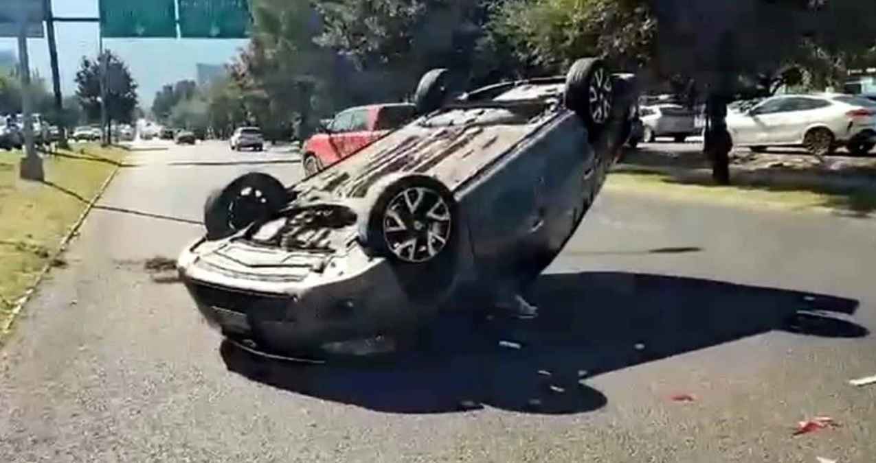 El reporte se registró alrededor de las 11:45 horas, cuando automovilistas alertaron sobre un auto que se había volteado en los carriles de norte a sur.