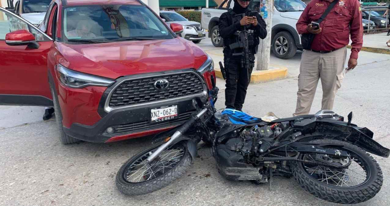 De acuerdo con los primeros reportes, la motocicleta avanzaba de oriente a poniente cuando una camioneta intentó dar un retorno sin la precaución necesaria, provocando la colisión. Tras el golpe, el motociclista perdió el control y terminó impactado contra otra camioneta que salía del estacionamiento de la misma tienda.