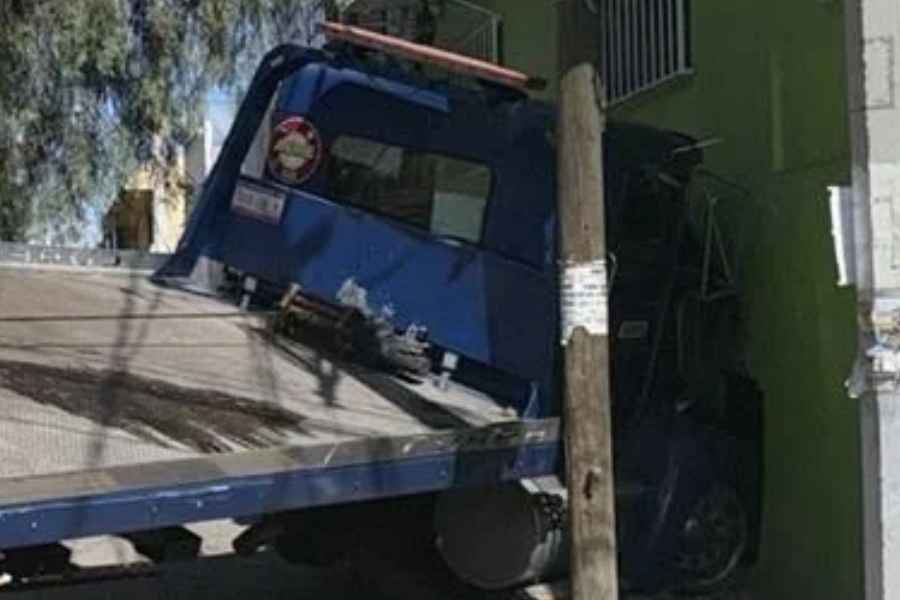 Aun así, la fuerza de la bajada fue mayor. La grúa siguió avanzando y terminó frenando hasta abrir un boquete en el muro de una casa. Aunque la pared correspondía a una habitación, no había nadie adentro en ese momento.