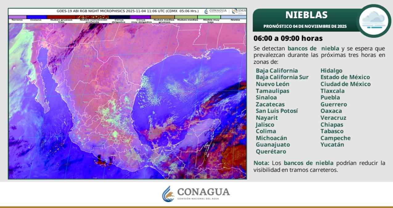 Los vientos oscilarán entre 10 y 20 km/h, con rachas de hasta 50 km/h en regiones de Coahuila, Nuevo León, Tamaulipas, San Luis Potosí, Querétaro, Hidalgo, Puebla, Tlaxcala y Estado de México.