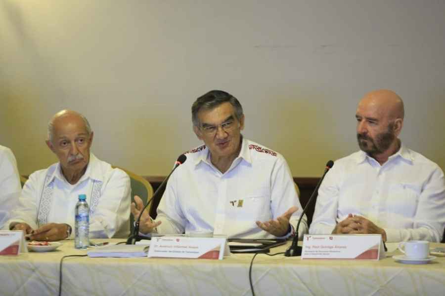 Durante la reunión de trabajo en el Club de Industriales de Tampico. Junto con el secretario de Recursos Hidráulicos, Raúl Quiroga y el secretario general de Gobierno, Héctor Joel Villegas. Además, de la presidenta municipal de Tampico, Mónica Villarreal Anaya, y el alcalde de Madero, Erasmo González Robledo, Villarreal Anaya firmó el convenio específico de colaboración entre el Gobierno de Tamaulipas y la Asociación de Industriales del Sur de Tamaulipas.
