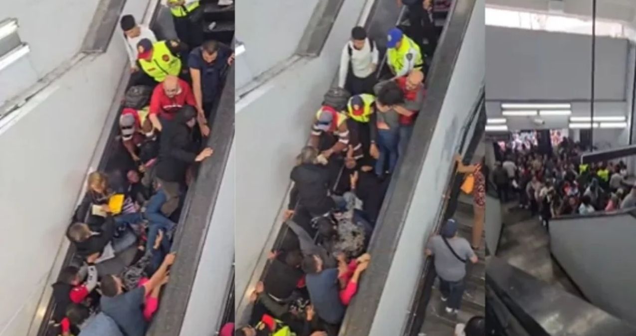 De acuerdo con la información que el titular del STC compartió en sus redes sociales. El percance ocurrió cuando una mujer que cargaba bolsas de gran volumen se atoró en la escalera, cayó y provocó un efecto dominó que involucró a más pasajeros.