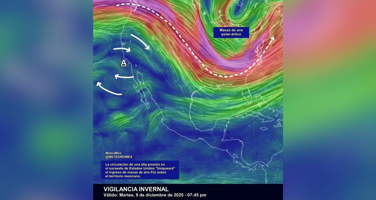 “Las masas de aire polar y ártico no podrán avanzar hacia México debido a la presencia de una alta presión”.