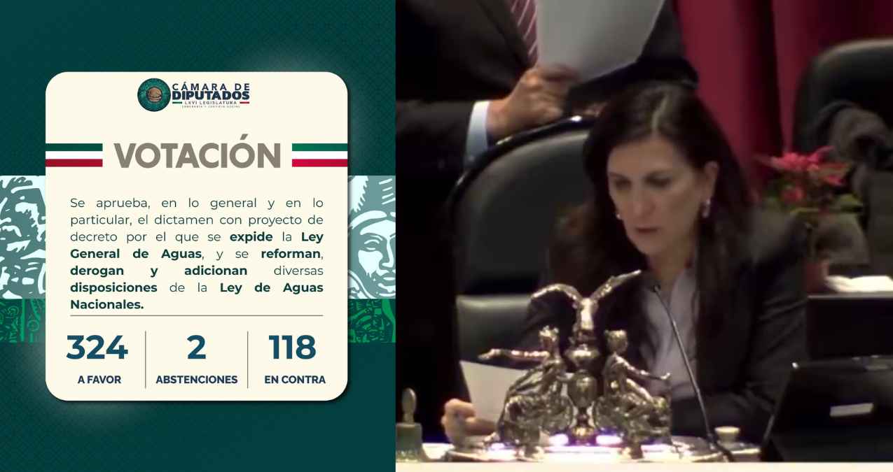 La Cámara de Diputados aprobó en lo general y en lo particular la reforma a la Ley de Aguas y decidió turnarla al Senado para su análisis. La propuesta incluye alrededor de 70 modificaciones respecto a la iniciativa presentada por la presidenta Claudia Sheinbaum.