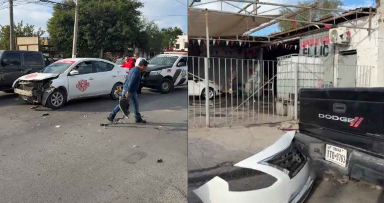 Taxi protagoniza choque con camioneta en calles céntricas de Matamoros