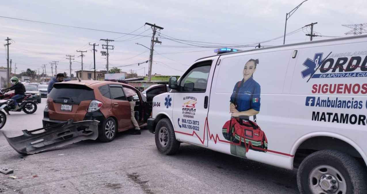 Un choque múltiple se registró sobre la Avenida Marte R Gómez, justo en la entrada al fraccionamiento Misiones I en Matamoros, luego de que una automovilista intentara cruzar para incorporarse y terminó impactando a dos camionetas que circulaban por la zona.