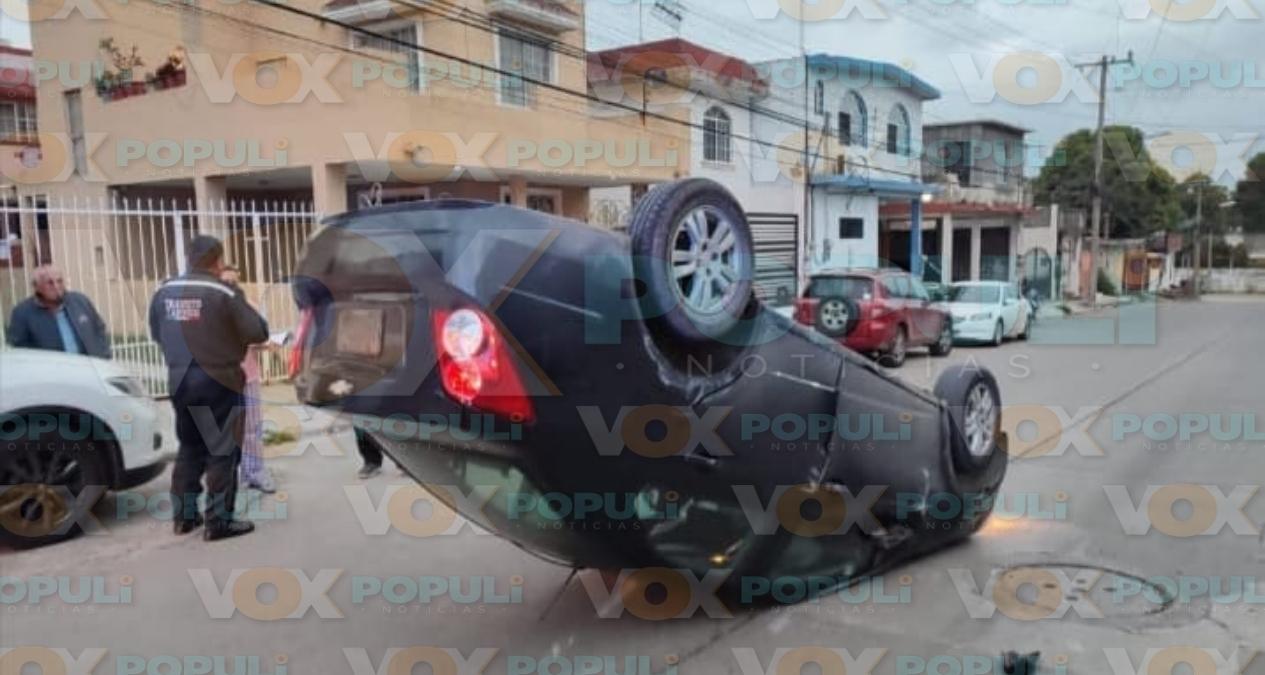 Un automóvil quedó completamente volcado y sin nadie a bordo en una esquina de la colonia Las Américas, al norte de Tampico. El conductor, quien aparentemente manejaba a alta velocidad, se dio a la fuga después de la volcadura en colonia Las Américas en Tampico.