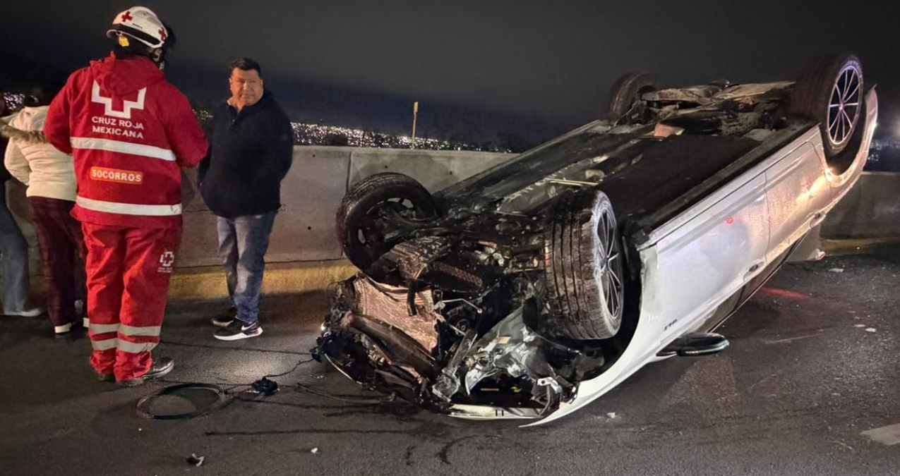 Conductor menor de edad vuelca en Paseo de los Leones en Monterrey