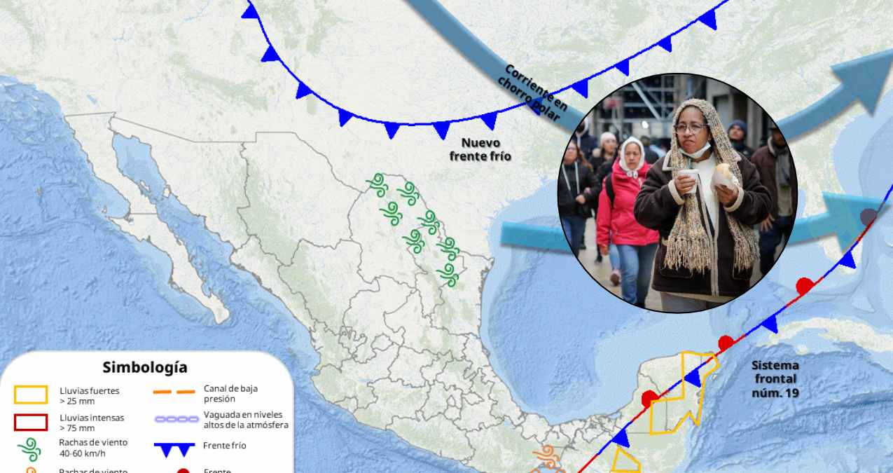 ¿Miércoles con lluvias intensas en México? De acuerdo con el Servicio Meteorológico Nacional (SMN), este miércoles 10 de diciembre el frente frío número 19, junto con canales de baja presión y el ingreso de humedad, provocará lluvias fuertes y chubascos en varias zonas del sureste.