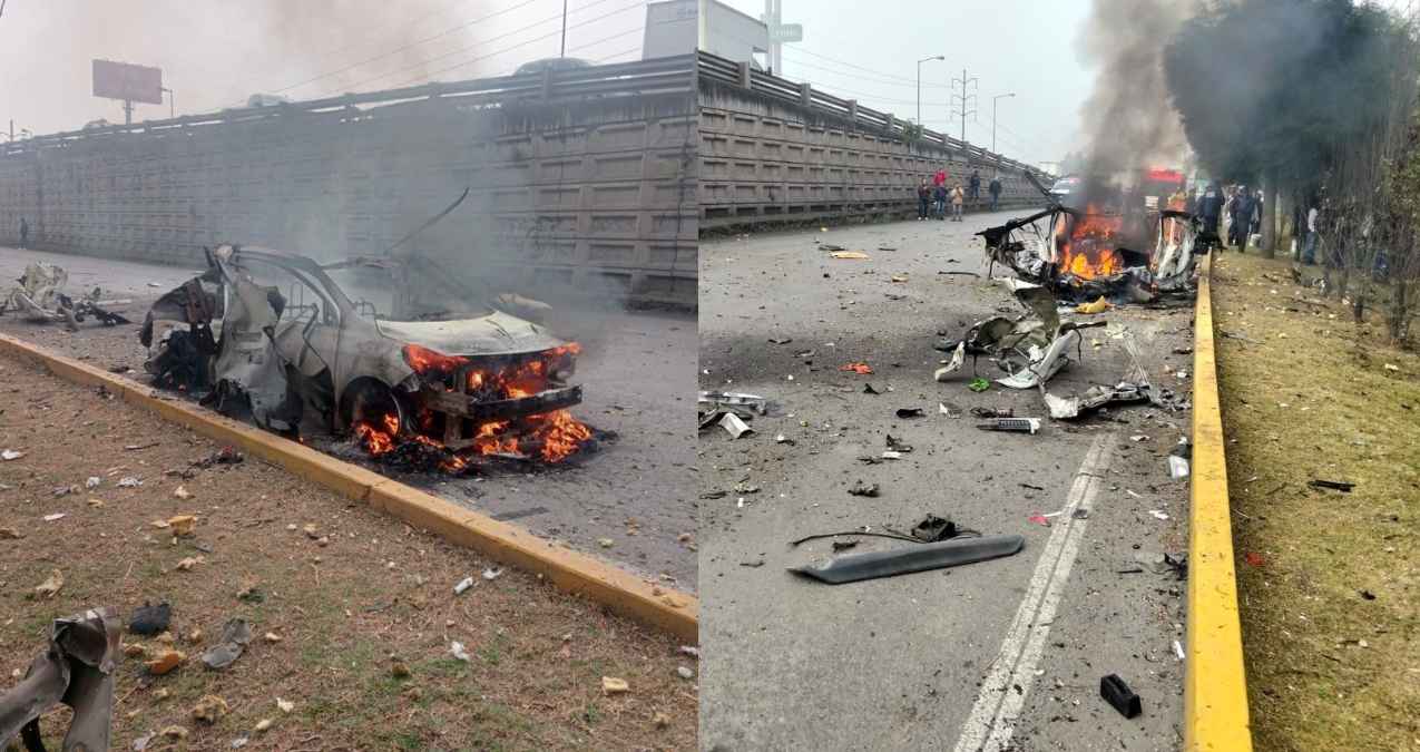 Fuerte explosión de taxi con pirotecnia en la México-Toluca moviliza a cuerpos de emergencia