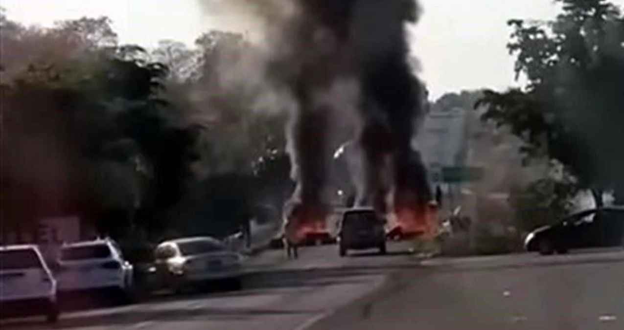 A la altura del puente de acceso a Buenavista Tomatlán, montaron una barricada con neumáticos incendiados y frenaron el paso de vehículos.