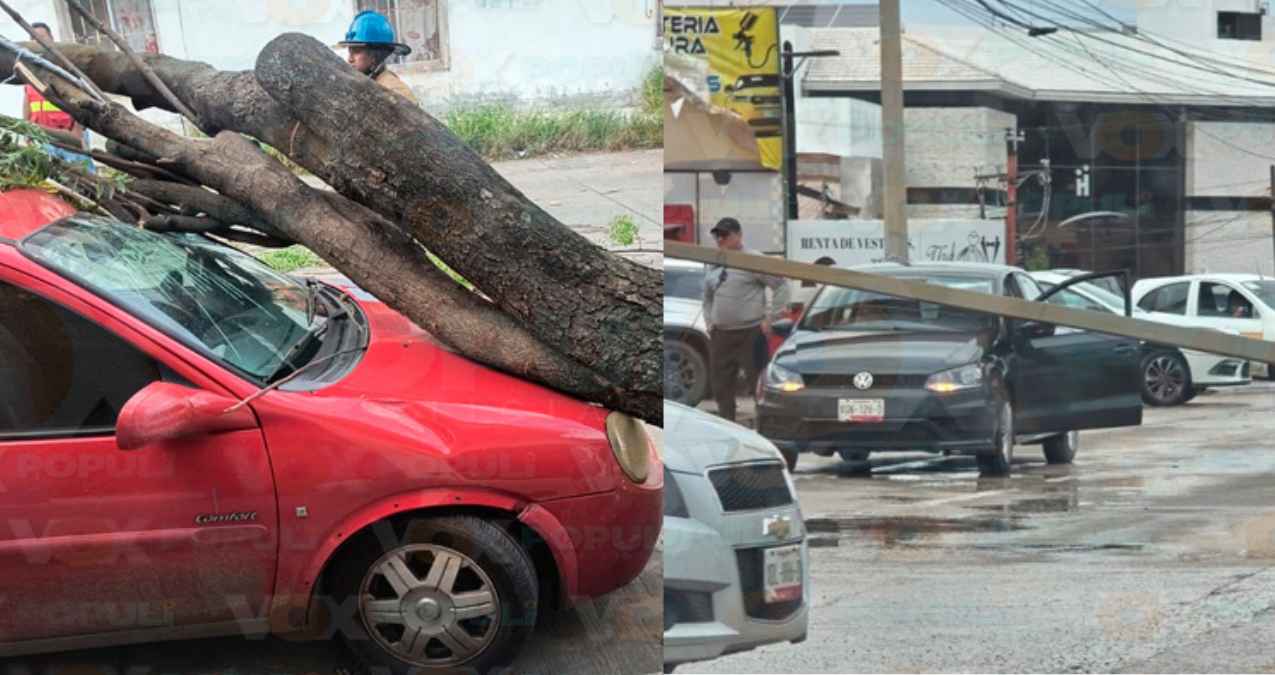 Las ráfagas de viento también provocaron la caída de un árbol y un poste en la calle Baja California, entre Bolivia y Salvador Díaz Mirón, en Ciudad Madero. Ambos cayeron sobre un automóvil Chevrolet Chevy color rojo que permanecía estacionado.