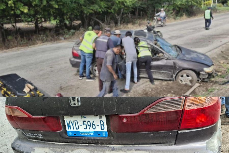 El automóvil involucrado, un Honda negro con placas WYD-596-B de Tamaulipas, quedó con severos daños en la parte frontal tras el impacto.