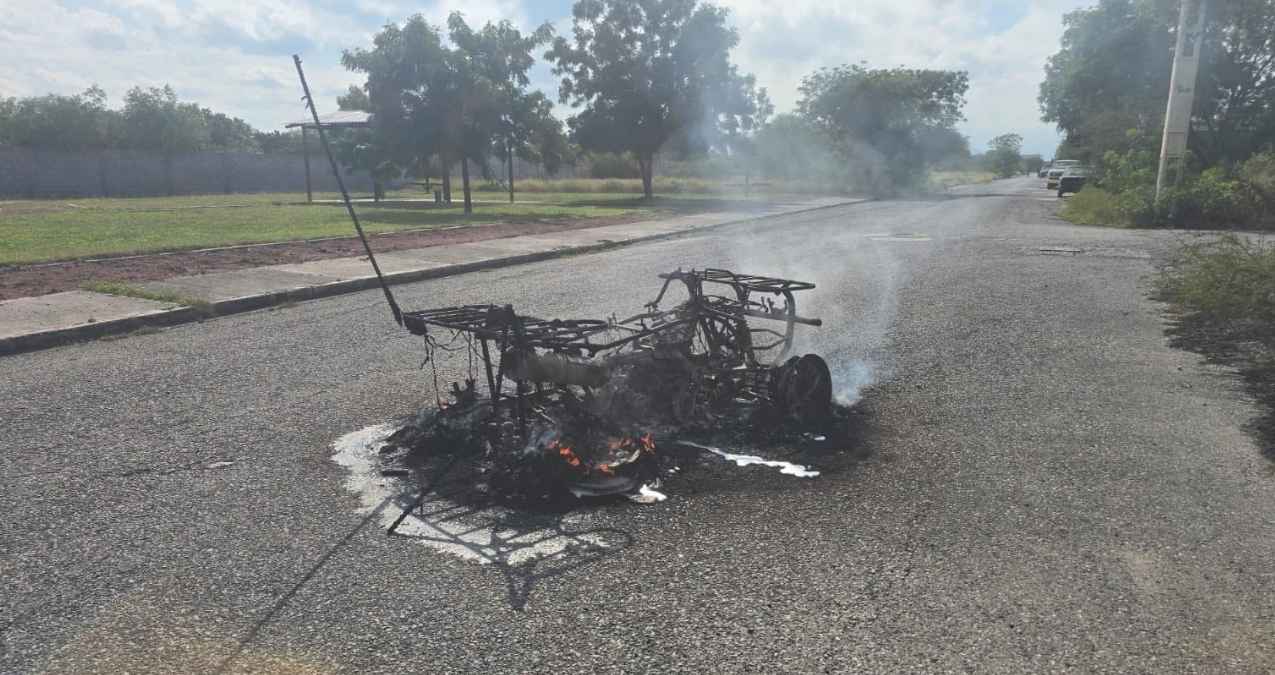 A pesar de los esfuerzos, las llamas consumieron por completo la cuatrimoto, dejando la unidad como pérdida total.