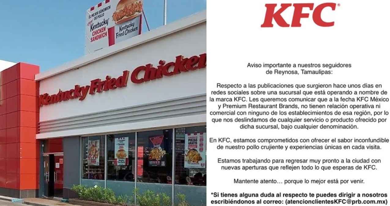 Ante esto, KFC informó en redes sociales oficiales que el establecimiento que opera como KFC en Reynosa, Tamaulipas, no pertenece a la marca. De esta manera, se confirmó que durante todo este tiempo la gente ha estado consumiendo en un lugar que no forma parte de Kentucky Fried Chicken.