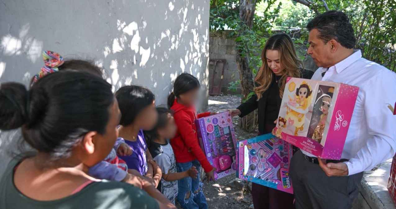 Cómo parte de la campaña “Ayudemos a Santa 2025” el Alcalde de Victoria “Lalo” Gattás y su esposa Lucy de Gattás, presidenta del Sistema DIF Municipal. Recorrieron hogares de las colonias Rosalinda Guerrero y Constitución del 17 para obsequiar juguetes y convivir con familias previo al festejo de la Navidad.