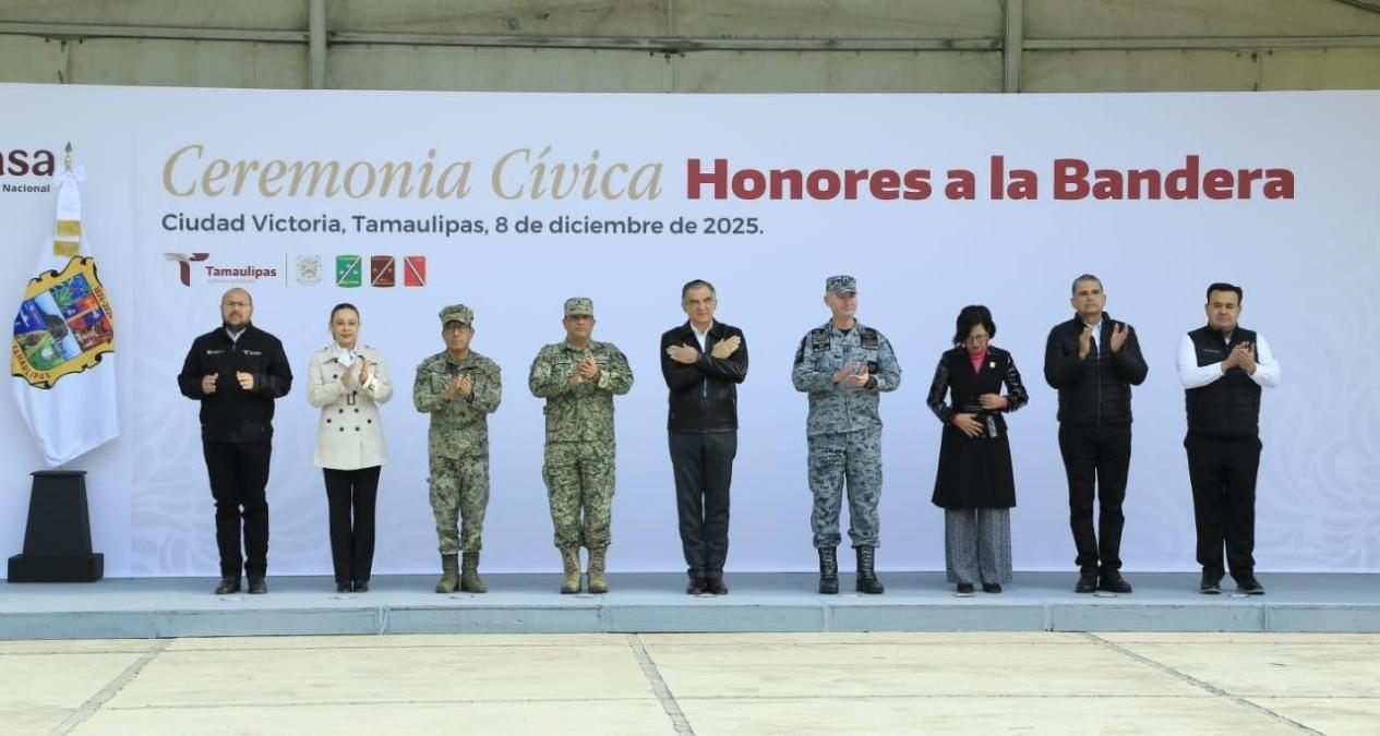 Durante su mensaje, el gobernador también reiteró su reconocimiento a las Fuerzas Armadas por el valioso servicio que brindan en favor de la paz, la seguridad y la transformación actual que se vive en México y Tamaulipas.