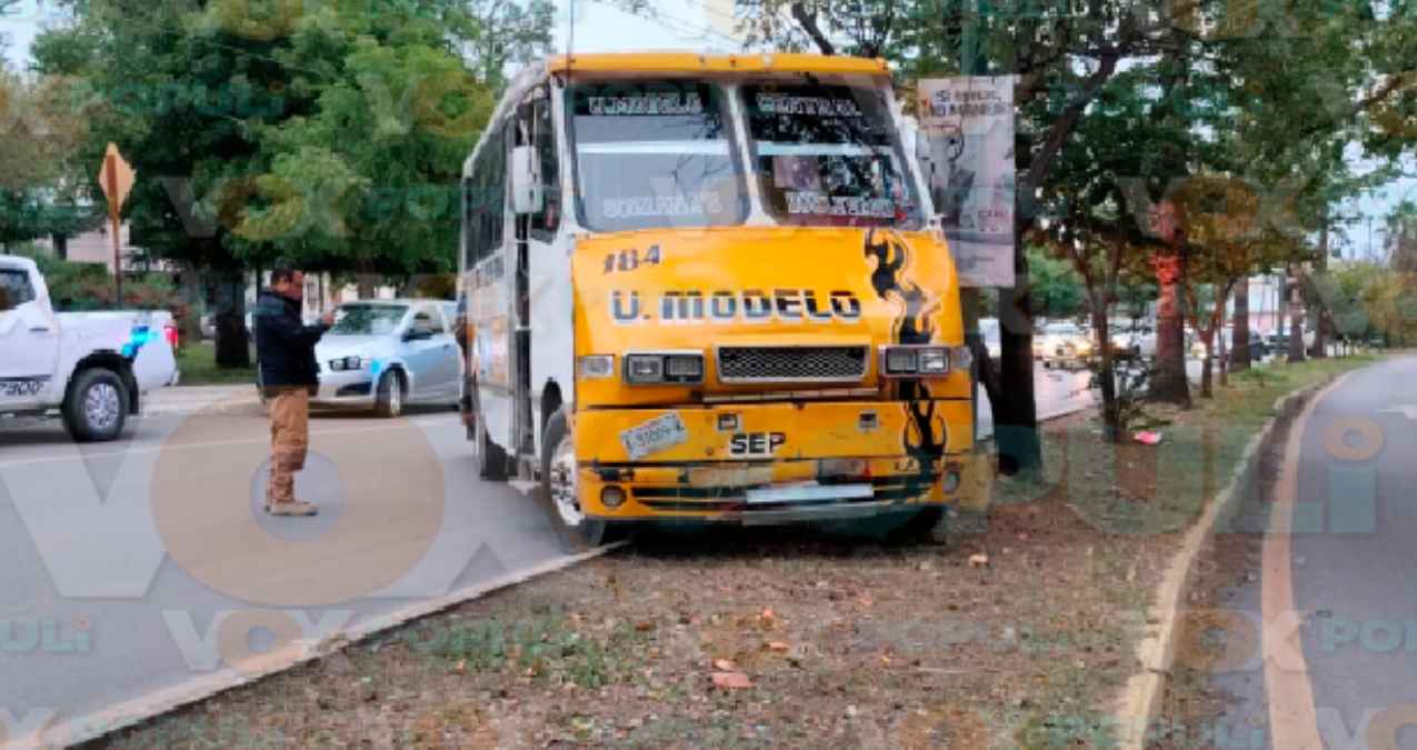 Un microbús con pasajeros terminó arriba del camellón central en Ciudad Victoria, luego de que el operador realizara una maniobra evasiva al verse cerrado por otro vehículo. El chofer afirmó que la persona del auto descendió molesta y le arrebató las llaves del transporte.