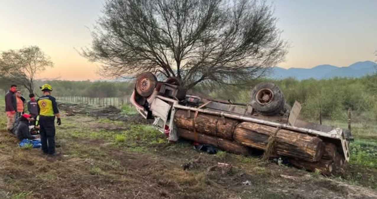 De acuerdo con lo establecido por las autoridades, una camioneta habría invadido el carril contrario, lo que obligó al conductor del camión a realizar una maniobra evasiva. Esto provocó que la unidad saliera del camino, cayera a un dren pluvial y terminara volcada, con la carga de troncos dispersa.