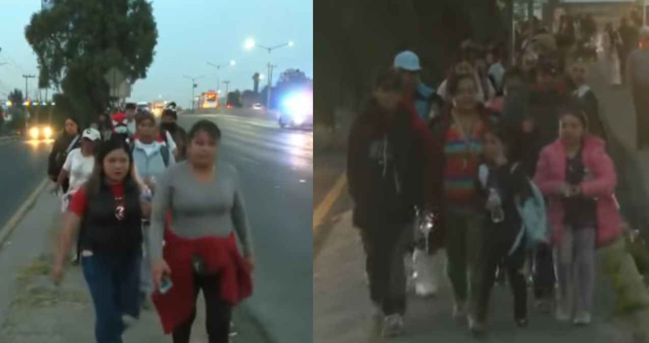 Cientos de peregrinos avanzan este jueves sobre la carretera México-Pachuca, en el Estado de México, mientras se alistan para completar la recta final de su camino hacia la Basílica de Guadalupe.
