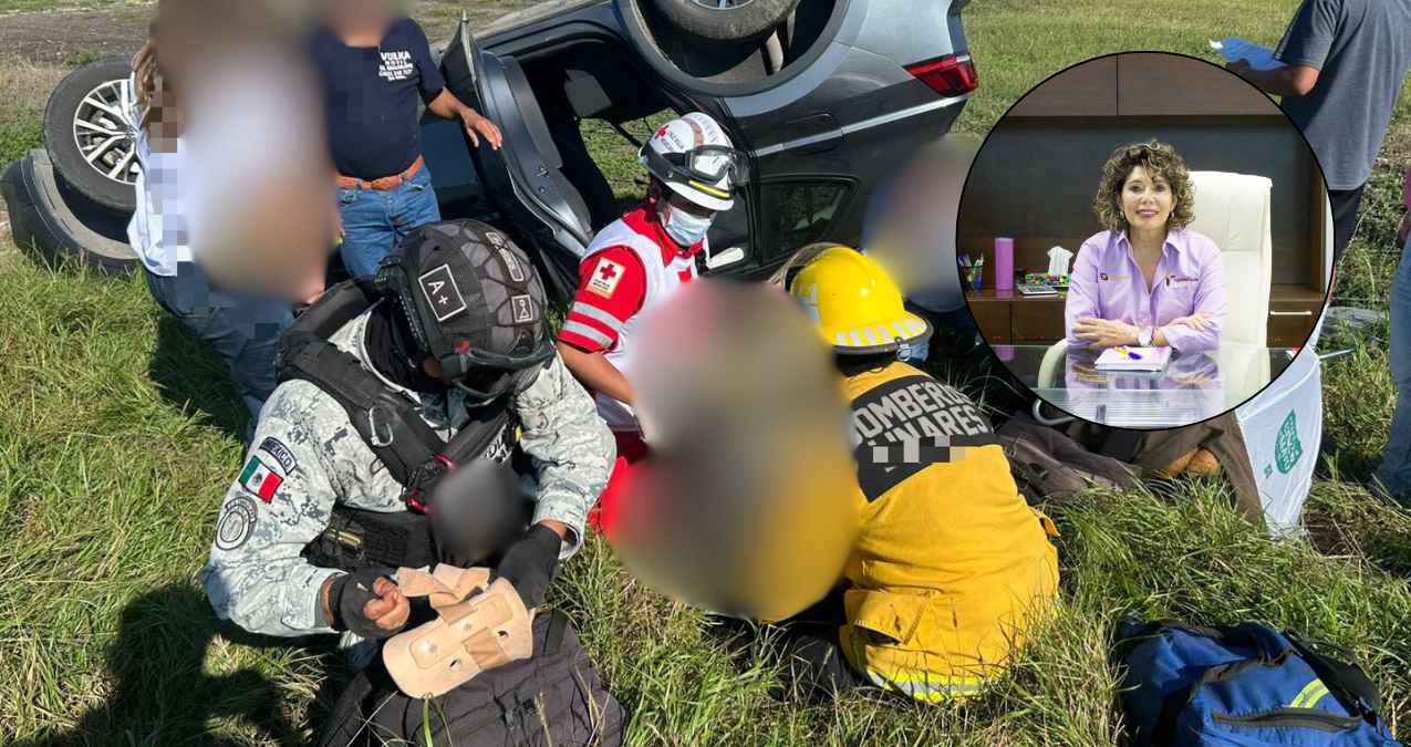 Titular de Bienestar Tamaulipas, herida tras volcadura en Linares