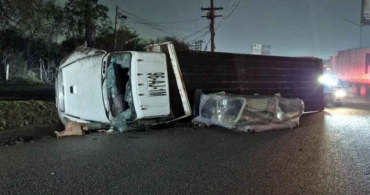 Un trailero que volcó la unidad que conducía fue víctima de robo mientras esperaba la llegada de las autoridades en la Carretera a Laredo de Apodaca.