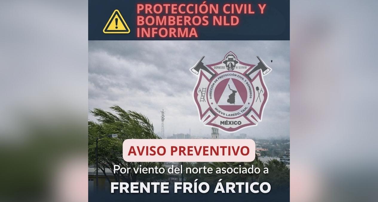 El Gobierno Municipal de Nuevo Laredo, mediante la Dirección de Protección Civil y Bomberos, informó que el fenómeno traerá condiciones secas y ventosas. Asimismo, se prevé un descenso en la sensación térmica.