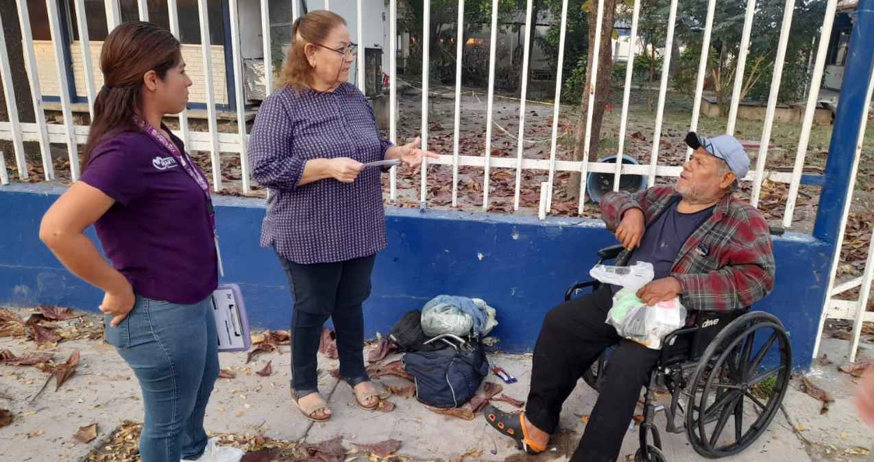 Personal del Sistema DIF acudió para brindar auxilio a José Oscar “N”, quien explicó que sus propios familiares lo trasladaron desde la frontera del estado y lo dejaron en ese punto. Aunque presenta una discapacidad motriz, el adulto mayor logró proporcionar sus datos. También relató el conflicto familiar que derivó en esta situación de desamparo.