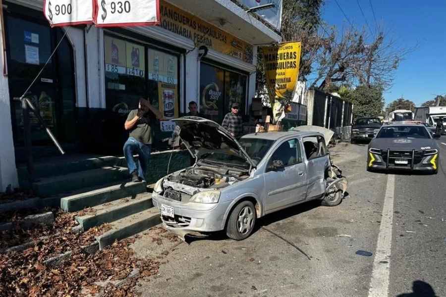 Segundos antes del percance, el conductor de uno de los autos dañados bajó del vehículo y entró a un negocio de refacciones, evitando resultar herido.