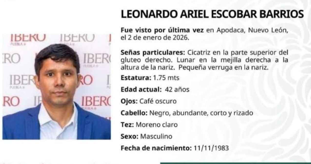 Escobar Barrios, quien también se desempeña como coordinador editorial de la IBERO, desapareció el 2 de enero. La última referencia sobre su paradero lo ubicaba en el Aeropuerto Internacional de Monterrey.