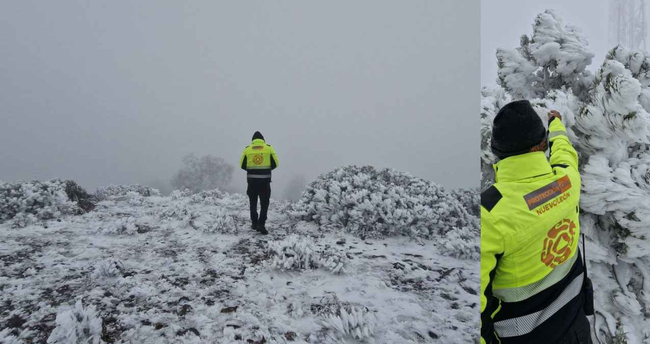 La nieve que cayó durante la madrugada del domingo en la cumbre del Cerro El Potosí, en Galeana, Nuevo León dejó un impresionante paisaje que fue compartido este lunes.