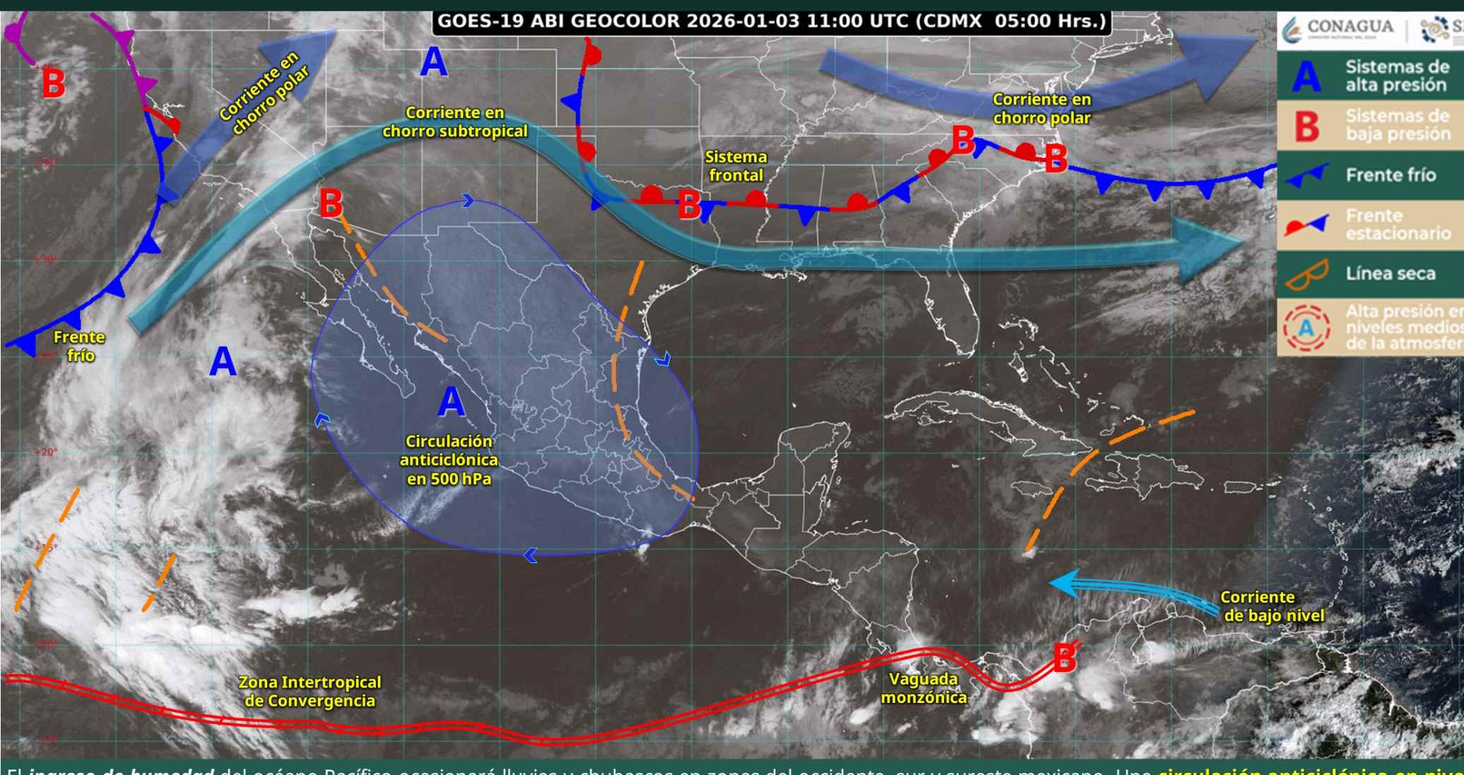 Pronóstico de lluvias para hoy 03 de enero de 2026: