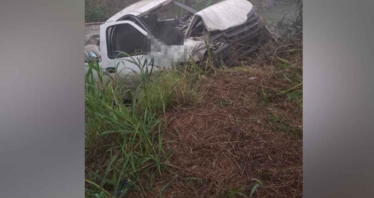 Muere un hombre luego de que la camioneta que conducía cayera a un canal de riego en González, Tamaulipas.