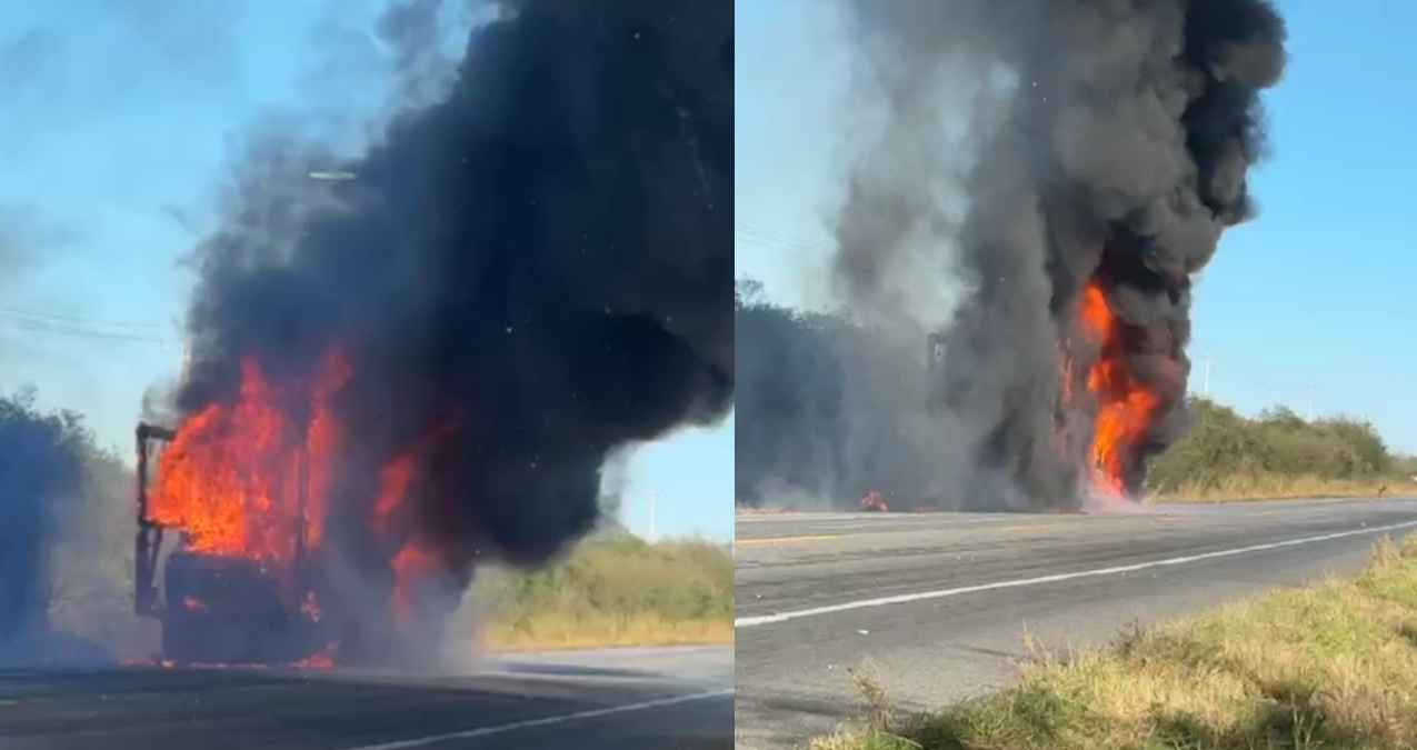 Las llamas consumieron, sobre el kilómetro 83 de la Carretera Victoria – Monterrey un contenedor de un tráiler conocido como nave nodriza, la mañana del jueves, luego de un altercado en la unidad, la cual transportaba varios vehículos de agencia, de los cuales un total de seis quedaron entre el fuego, siendo pérdida total.