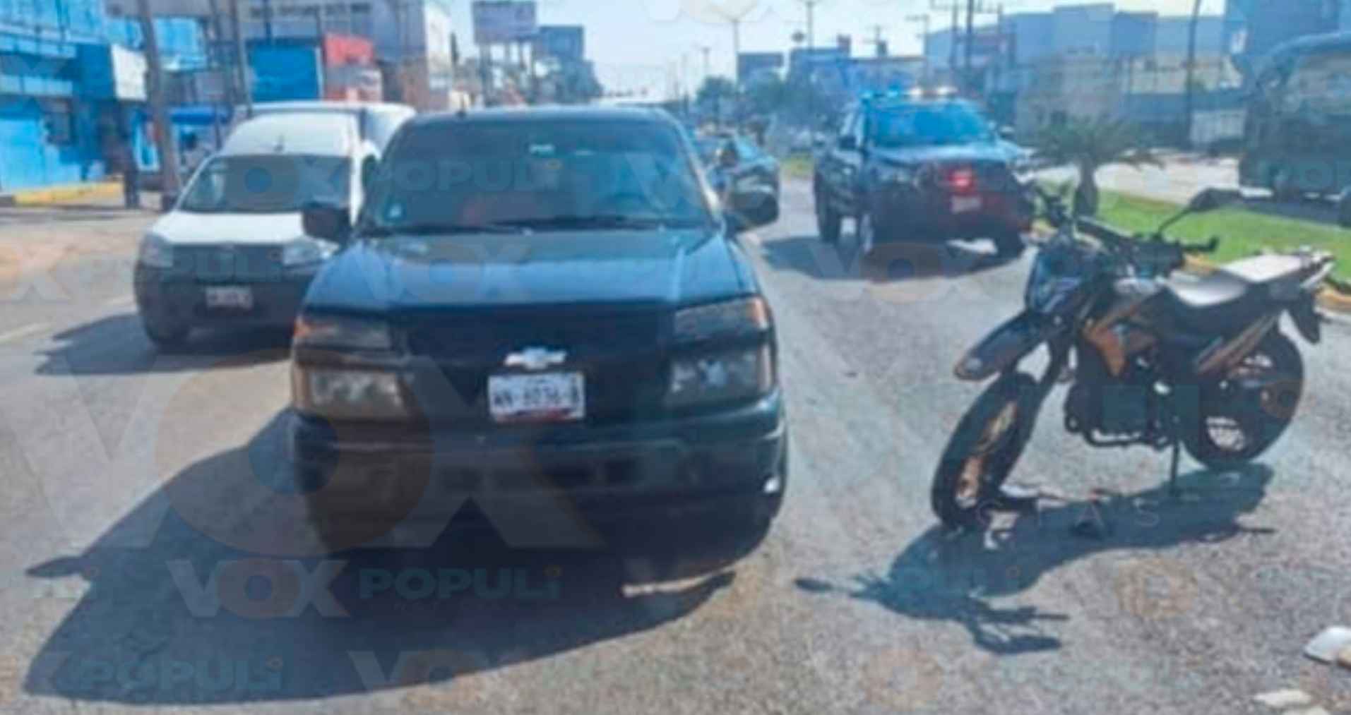 Según información de las autoridades, el motociclista circulaba rumbo al norte y, al no respetar la distancia reglamentaria, terminó chocando contra una camioneta Chevrolet Colorado color negro, doble cabina tipo pick-up, con placas de Tamaulipas.