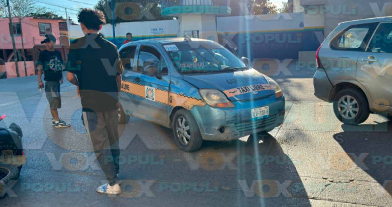 Un motociclista resultó lesionado después de chocar contra un taxi habilitado como carro de ruta en la colonia Solidaridad, Voluntad y Trabajo, también conocida como “La Borreguera” en Tampico.