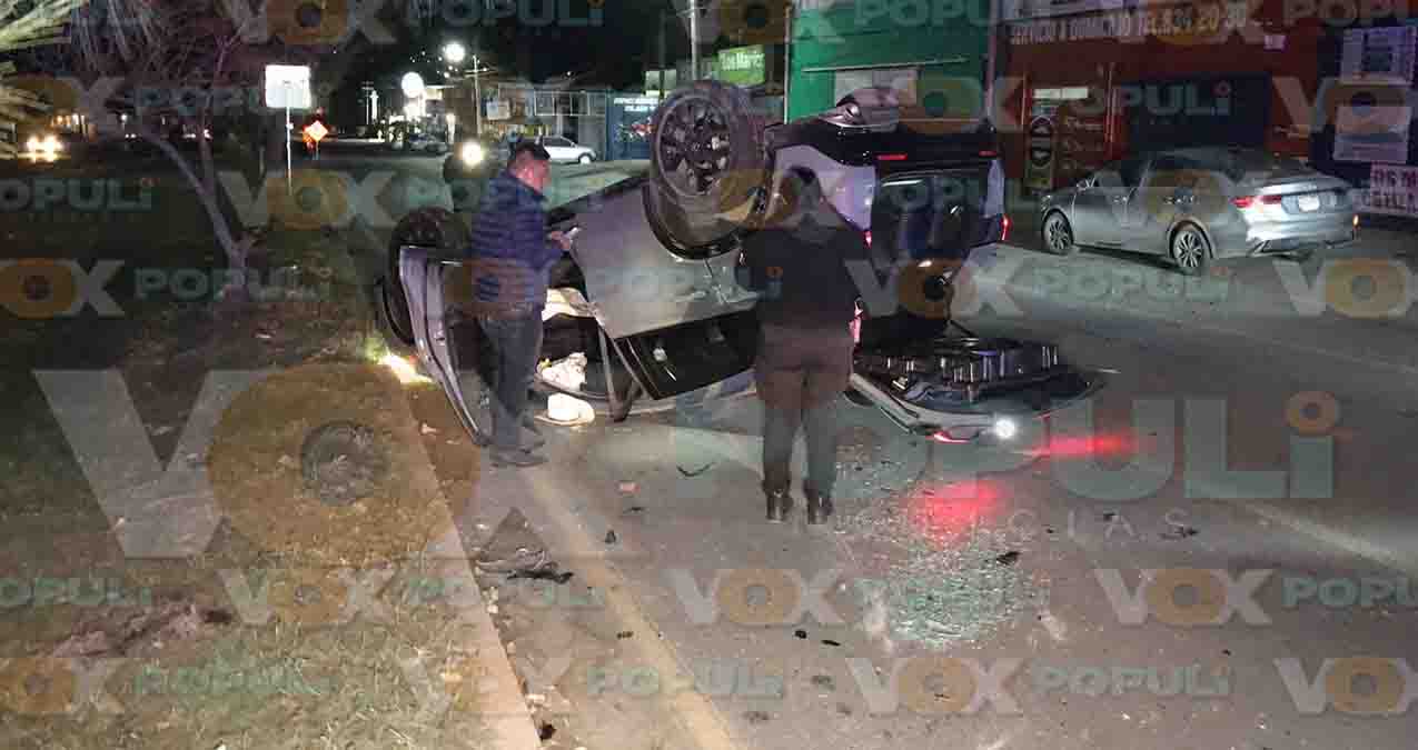 Accidente en Ciudad Victoria: Pareja choca contra luminaria y vuelca en el Libramiento Portes Gil