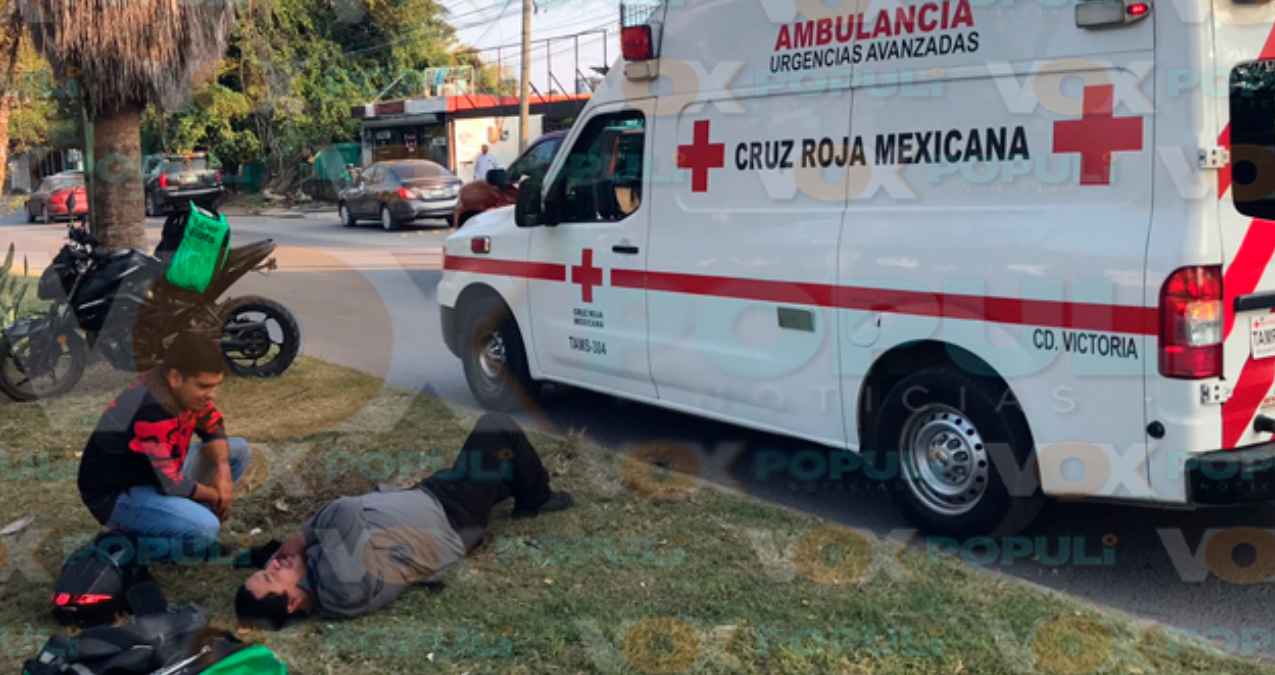 Un repartidor acabó tendido en el suelo lesionado, después de ser impactado aparentemente por una camioneta cuando su conductor se incorporó a un bulevar en Ciudad Victoria sin precaución, mandándolo hacia el camellón central, mientras el responsable se daba a la fuga cobardemente.