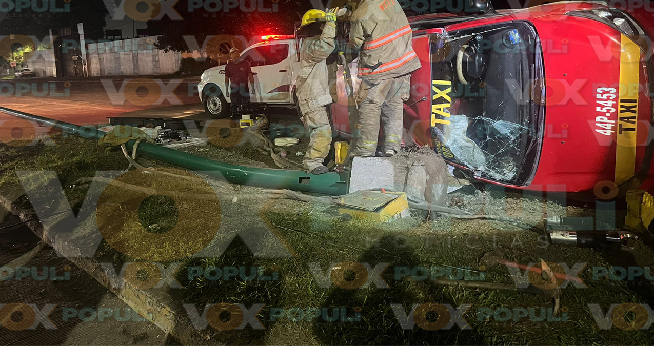 Un taxista resultó gravemente herido luego de volcar su vehículo tras chocar contra un poste de alumbrado público.
